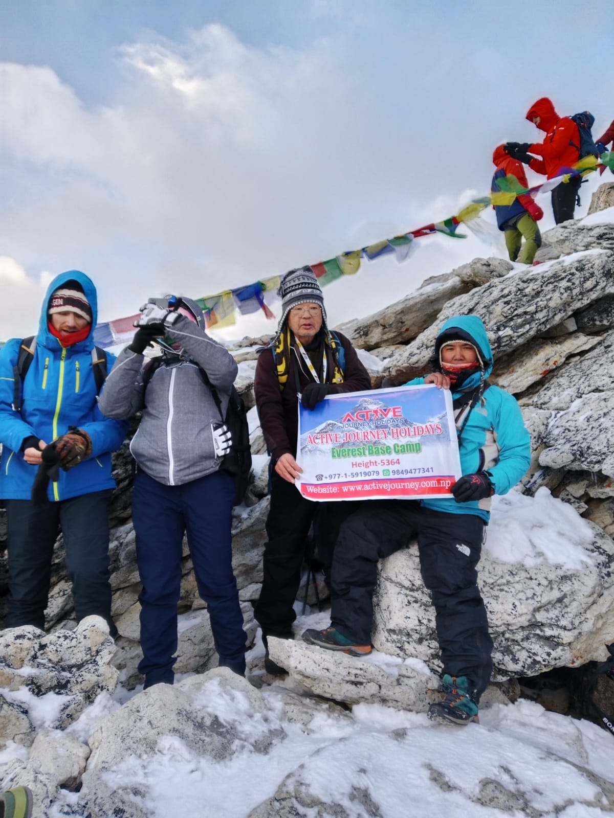 Next, proceed to Kala Patthar. Take in the beautiful views of the mountains, which include Mt. Ama Dablam, Mt. Kangtega, Mt. Nuptse, Mt. Thamserku, Mt. Kusum Kanguru, Mt. Pumori, Mt. Lhotse, Lobuche Peak, Island Peak, Mt. Makalu, and of course, the magnificent Mt. Everest, which towers above the rest.