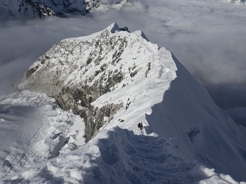 Nearly the whole mountain has fixed lines running from the crampon point to the top in the spring of 2016. Three 10- to 15-foot-long ladder crossings were also present at this time, however their lengths will change yearly depending on the amount of snowfall and the time of year. Make sure that everyone on your team is used to, confident with, and experienced with each of these crossings and crampon procedures. Prepare to crawl across each ladder on your hands and knees if the wind is really strong.